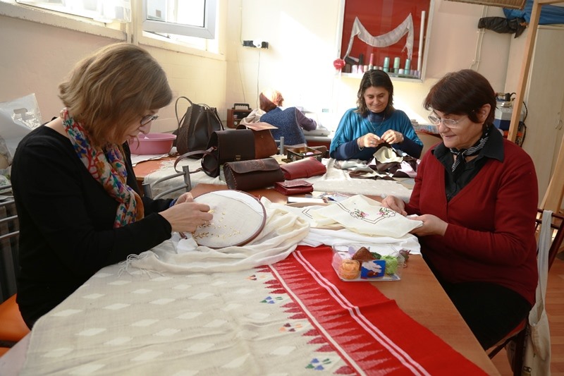 Doruk beraberindeki İl Milli Eğitim Müdürü Fahri Acar ile birlikte giyim, nakış, el sanatları ve benzeri dallarda açılan kurslarda eğitim gören kursiyerlere sohbet ederek yaptıkları el emeği ürünleri inceledi.