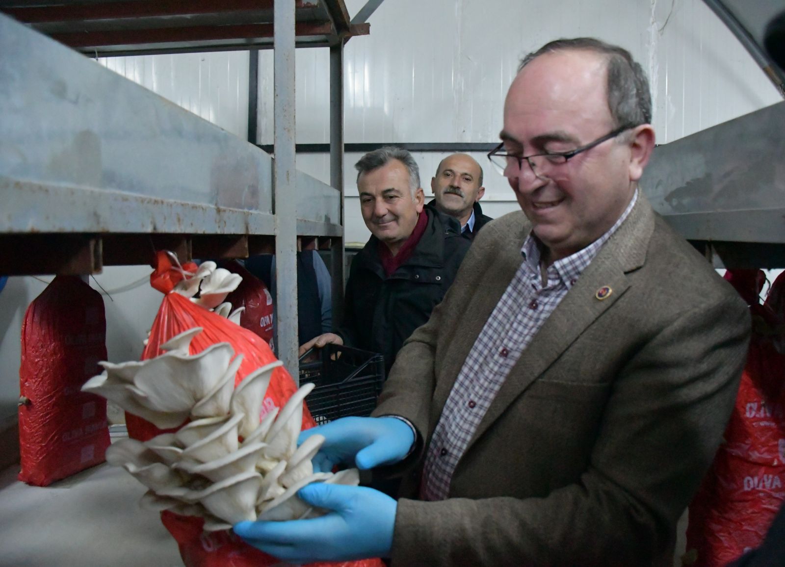 Artvin Belediye Başkanı Demirhan Elçin, merkeze bağlı Ballıüzüm köyünde kurulan tam otomasyonlu kayın (istiridye) mantarı üretim tesislerini inceledi.