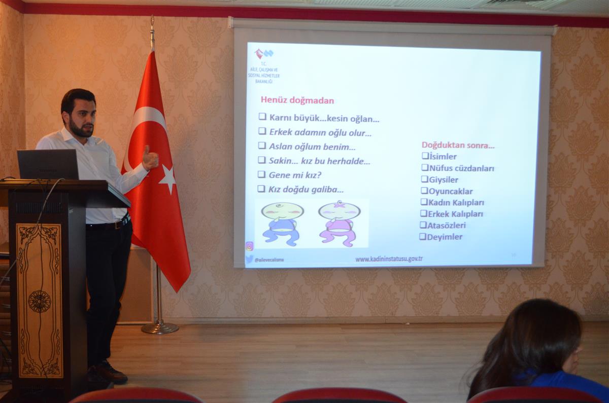 Sosyal Hizmet Uzmanı- Sinan Balcı’nın sunum yaptığı sempozyumda; “Biyolojik cinsiyet, bireyin kadın ve erkek olarak mevcut genetik, fizyolojik ve biyolojik özelliklerini, toplumsal cinsiyet ise toplum ve kültürü tarafından kadına ve erkeğe atfedilen kişilik özellikleri, rolleri, değerleri ve beklentileri ile ilgili kalıp yargıları açıklamaktadır. Toplumsal yaşamın her alanında (eğitim, sağlık, fırsatlara ve toplumsal hizmetlere erişim, istihdam vb.) kadın ve erkeğin kamusal imkân ve fırsatlardan eşit ve adil bir şekilde yararlanması gerekmektedir.