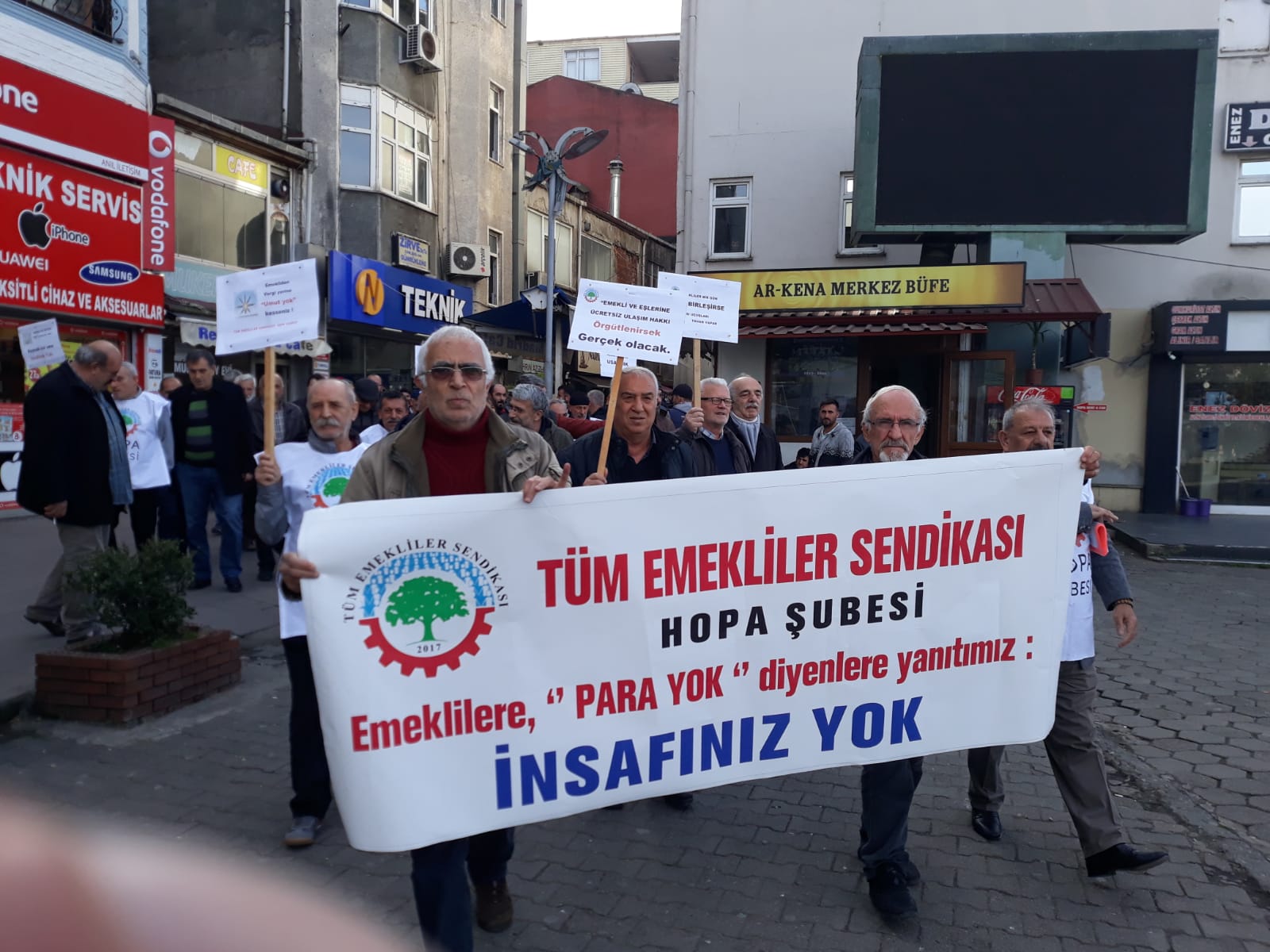 Hopa’da 2020 Bütçesini Protesto Ettiler! Tüm Emekliler Sendikası Hopa Şubesi meydana inerek “Biliyoruz ki, hazırlanan bütçeler ve 2020 Büt