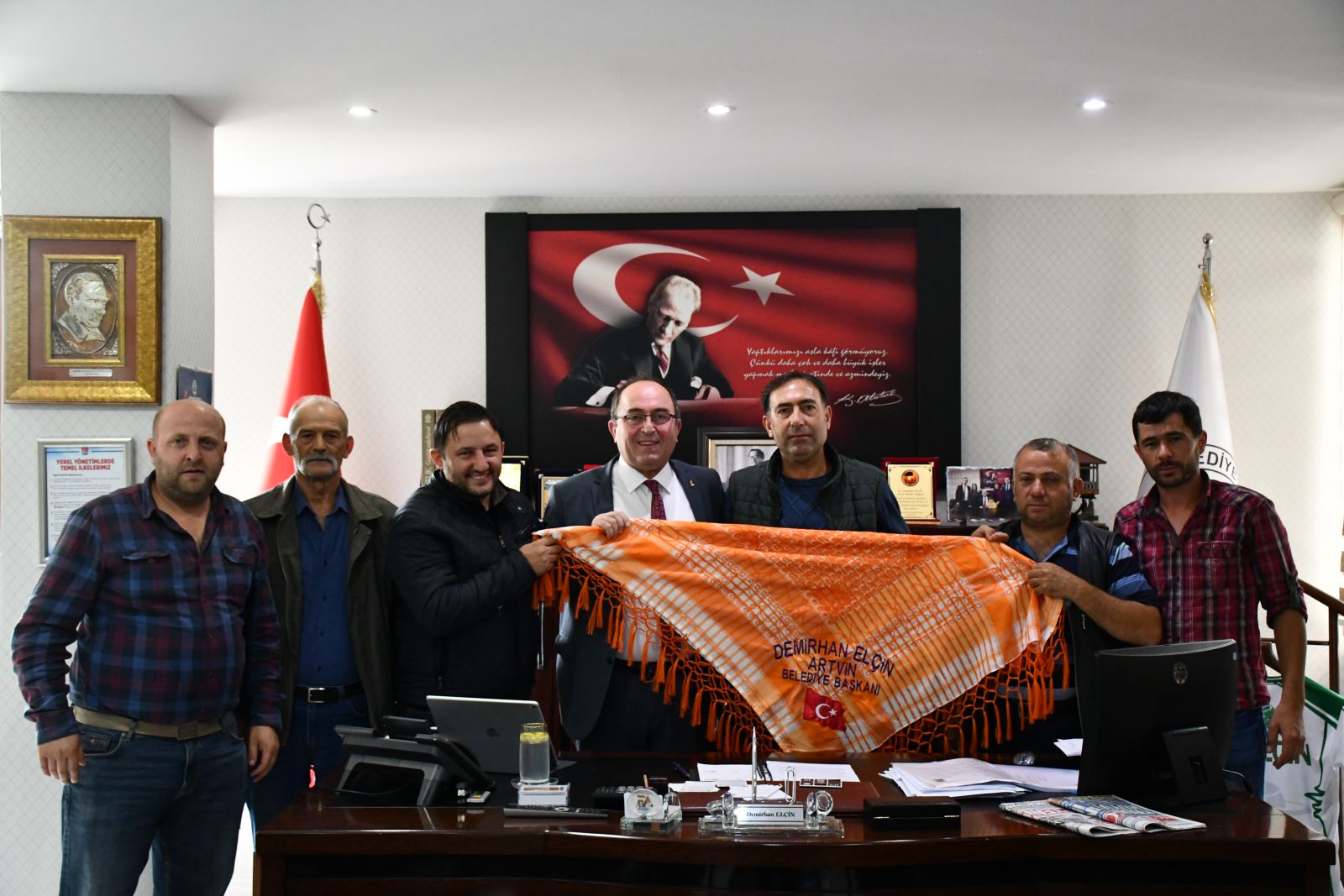 KARADENİZ - EGE ATÇA ŞAMPİYONA SORUMLULARI BAŞKAN ELÇİN'İ ZİYARET ETTİ Artvin Belediye Başkanı Demirhan Elçin’i, Karadeniz - Ege Atça Boğa Güre