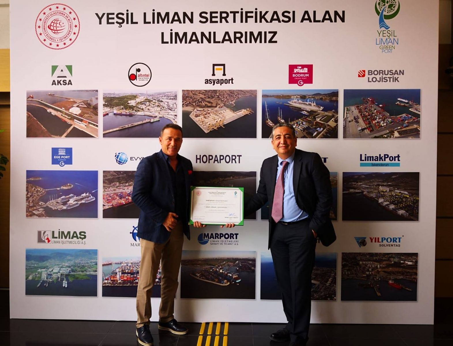 HOPAPORT Yeşil Liman Sertifikası Aldı Yeşil Liman Sertifika Töreni'nde, aralarında Hopaport, Kurport, Yılport gibi limanlarında bulunduğu 15 liman Yeşil Liman Sertifikası aldıla
