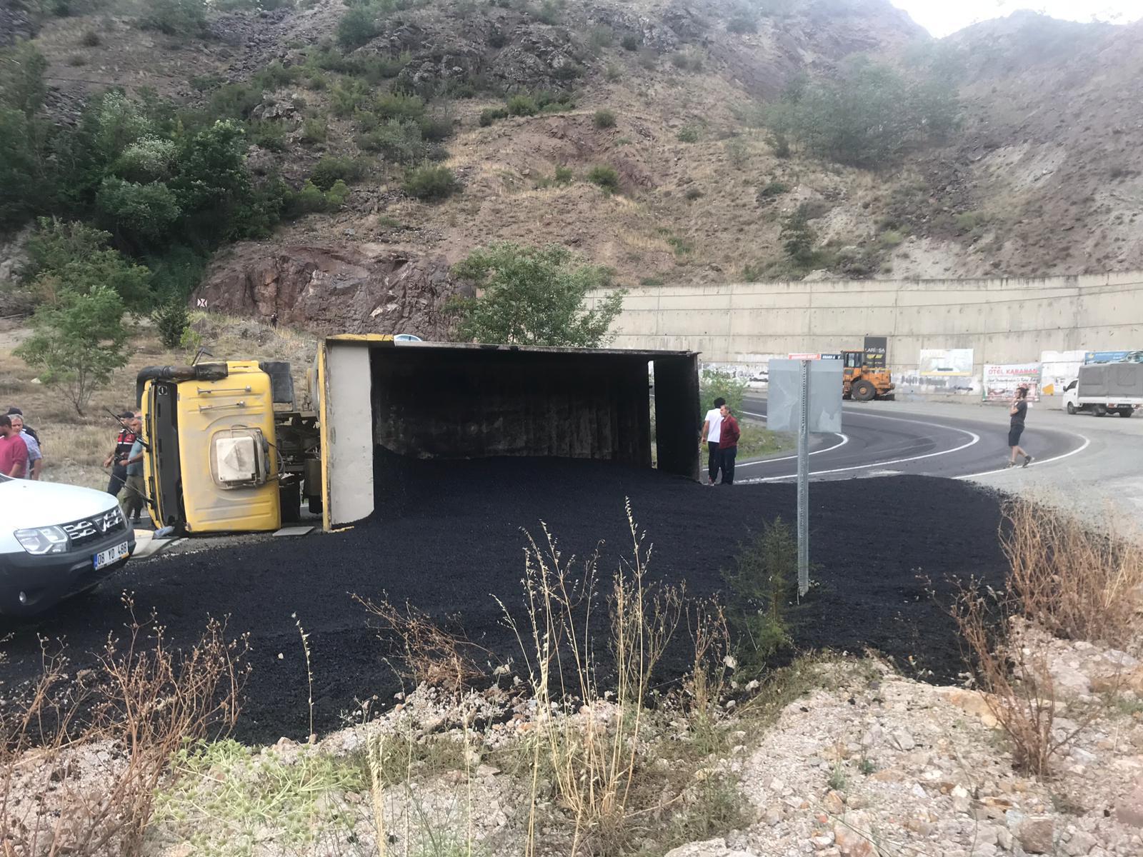 Artvin’de Asfalt Yüklü Kamyon Devrildi