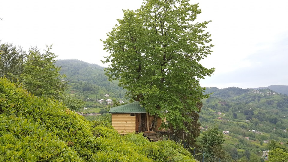 ARTVİN'in Arhavi ilçesinde inşaat mühendisi Osman Kaba, ıhlamur ağaçlarının gövdesine yerden 10 metre yükseklikte, 30 metrekarelik ev yaptı. ARTVİN'