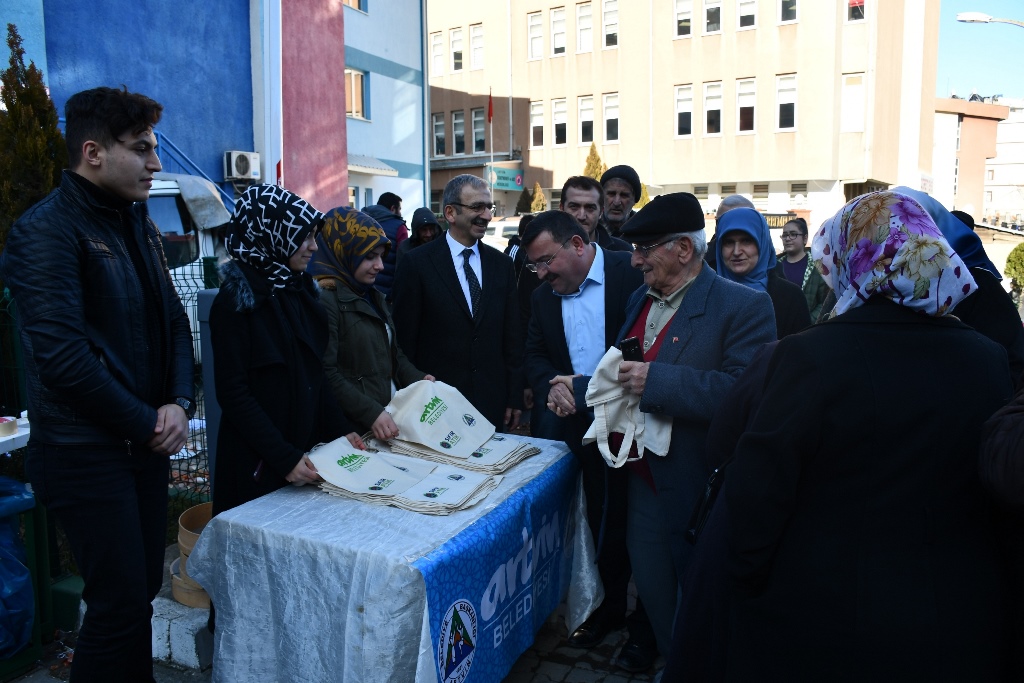 Artvin Belediyesi’nden Çevreci Davranış Artvin Belediye Başkanı Mehmet Kocatepe sıfır atık projesine destek amacıyla semt pazarı girişinde bez torba dağıttı. Artvin Bel