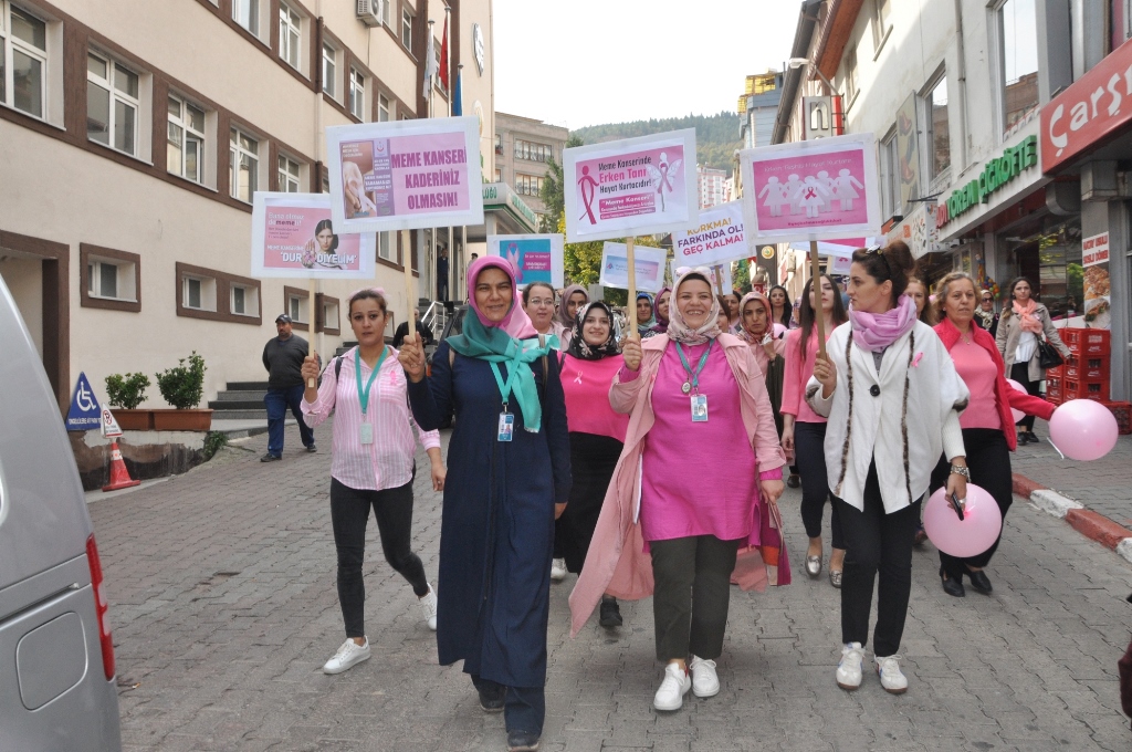 Artvin’de Meme Kanserine Farkındalık Yürüyüşü Artvin’de, meme kanserine dikkat çekmek için farkındalık yürüyüşü düzenlen