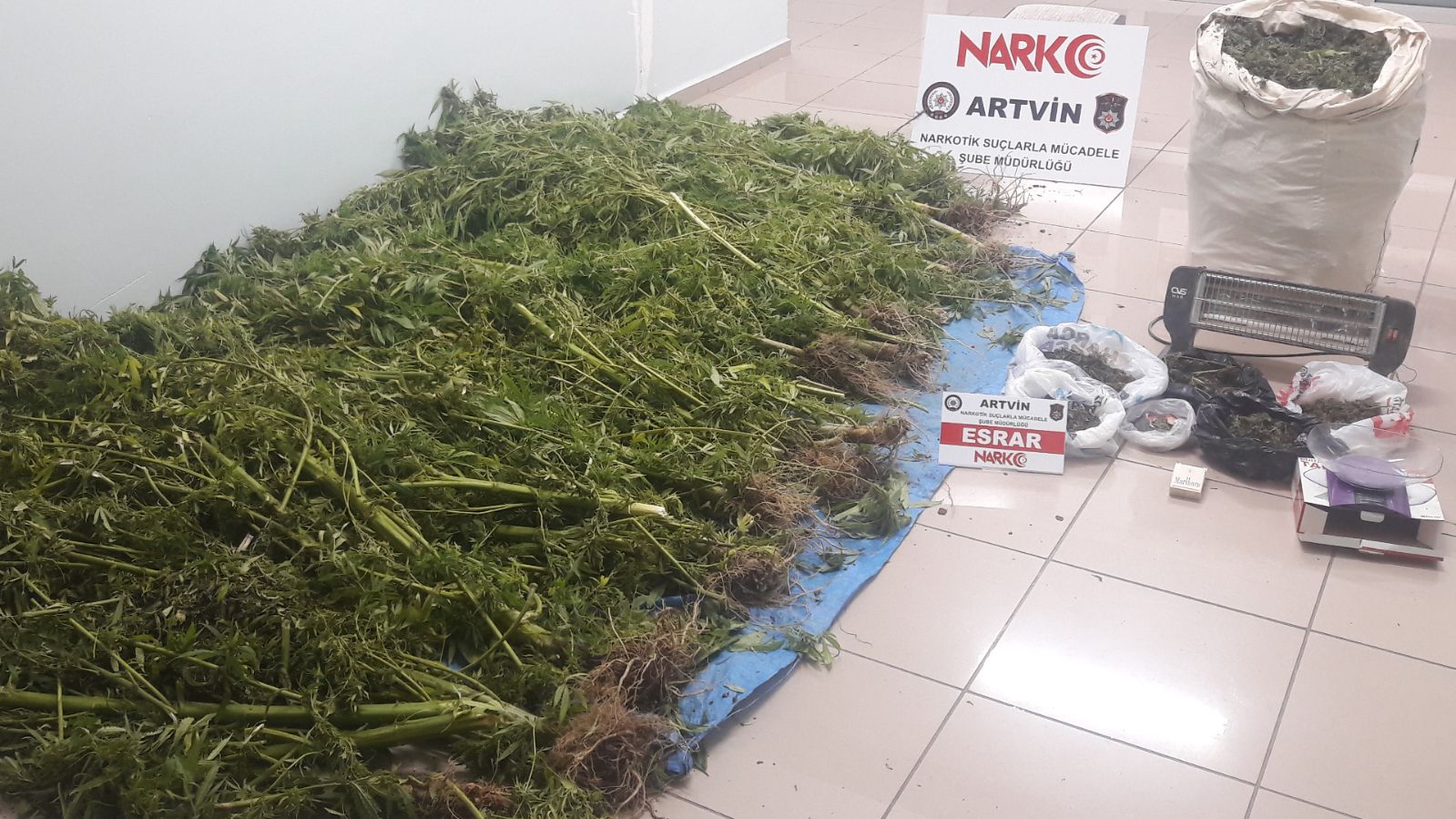 Artvin’de Uyuşturucu Operasyonu Artvin’de yapılan uyuşturucu operasyonunda 21 kilo 713 gram “Kubar Esrar” ile 20 kök “Hint keneviri” ele geçirildi