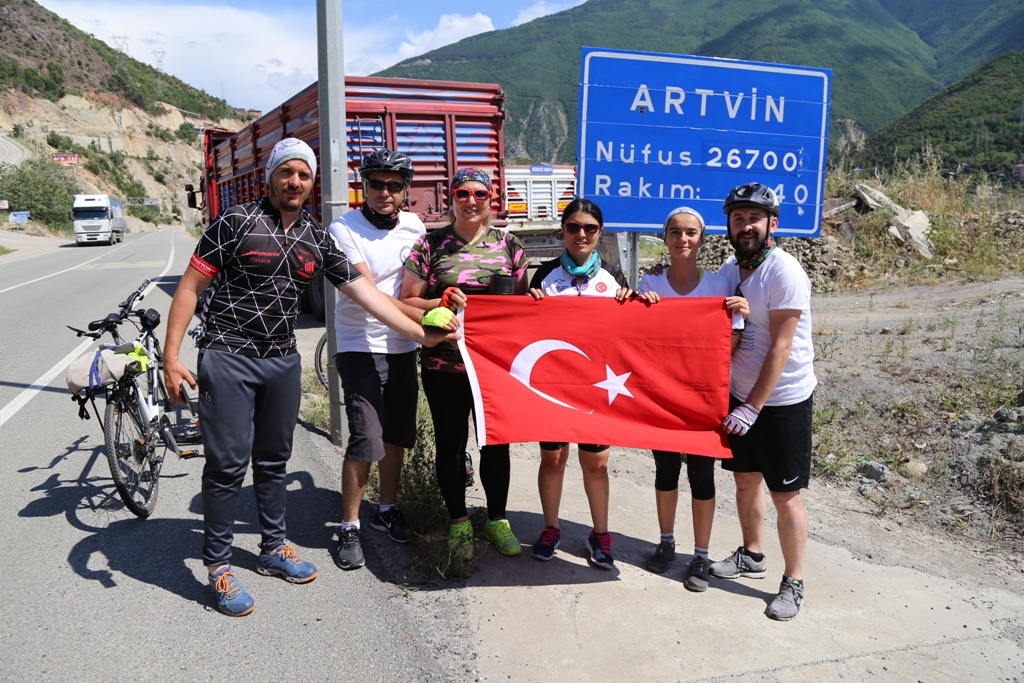 Mor Pedallar Artvin’de Muğla Mor Pedal Kadın Bisiklet Derneğinin bisiklet kullanımına dikkat çekmek amacıyla “El ele, elden ele 81 ile” sloganı ile başla