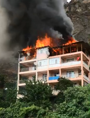 YUSUFELİ'DE 5 KATLI BİNADA YANGIN İlimiz Yusufeli ilçesinde 5 katlı bir binanın en üst katında çıkan yangın çevrede korkuya neden oldu.. Alevleri