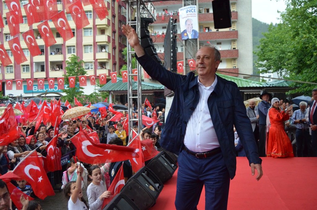 CHP’nin 24 Haziran Cumhurbaşkanlığı seçimlerindeki Cumhurbaşkanı adayı Muharrem İnce, Artvin mitingini öğretmenlik mesleğine başladığı Borçka ilçesind