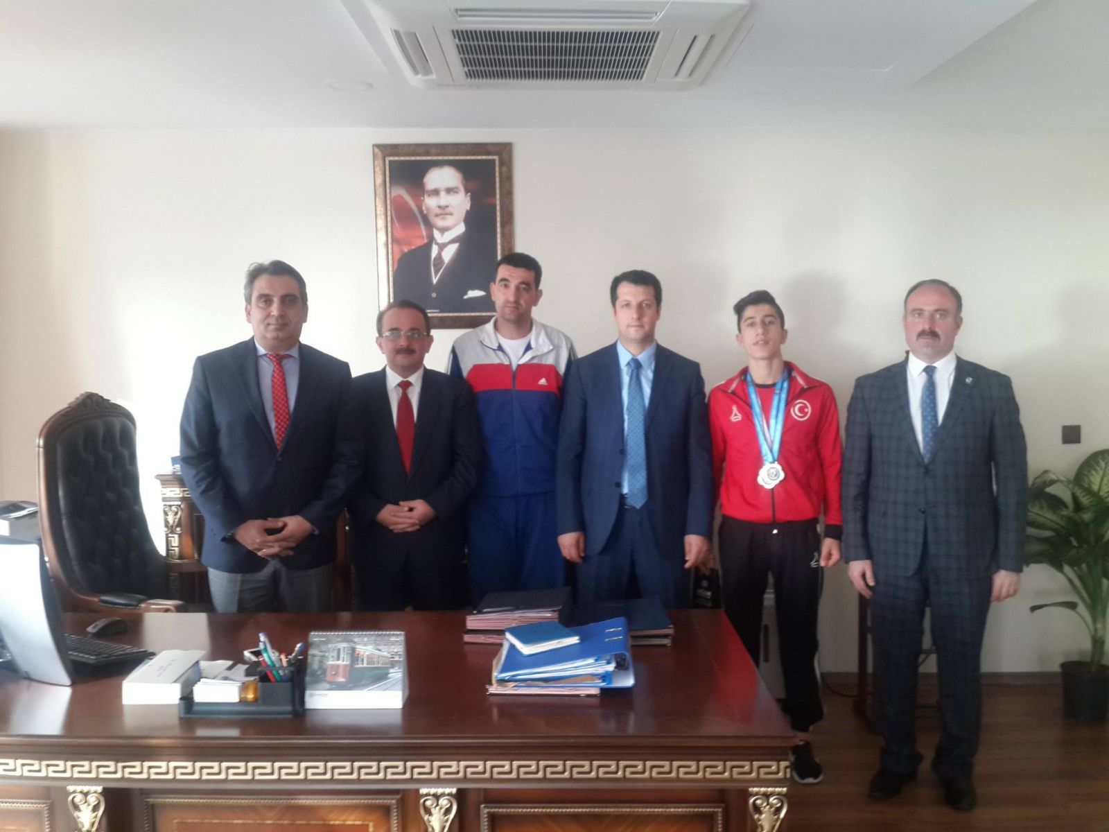 Engelli Sporcu Nuh Çakar, Kaymakam Caboplat’ ı Ziyaret Etti Hopa Anadolu İmam Hatip Lisesi öğrencisi Nuh Çakar Kaymakam Abdurrezzak Canpolat’ ı makamında ziyaret