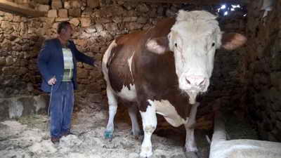 Artvin’de İki Tonluk Boğa Bu Boğayı Sahibi Cumhurbaşkanı Erdoğan’a Hediye Etmek İstiyor Artvin'in Yusufeli ilçesinde, Hasan Dayanç'a ait 'Poyraz'