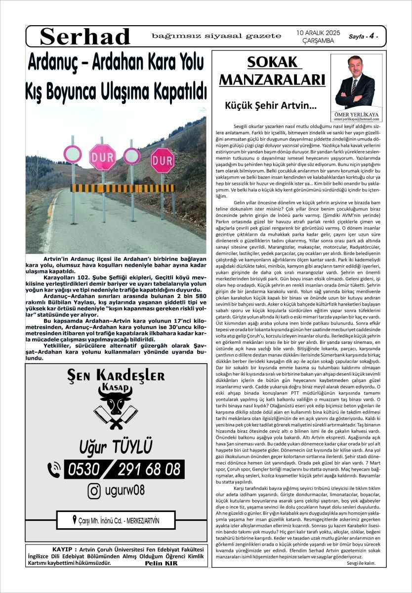 Serhad Artvin Gazetesi © 2012 Tüm Hakları Saklıdır.